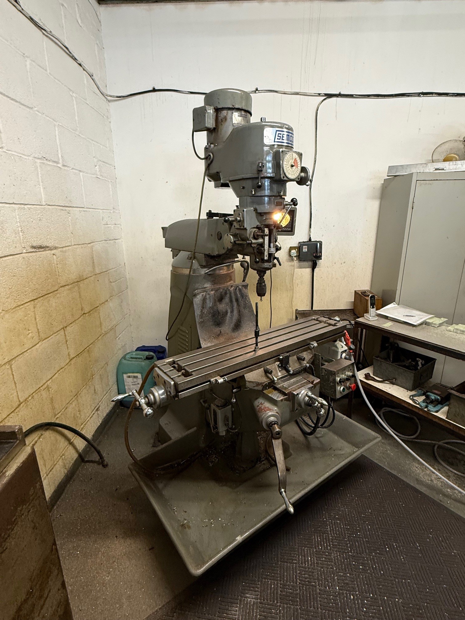 Variable speed head, 2 axis DRO, power long feed, coolant, splash tray, light