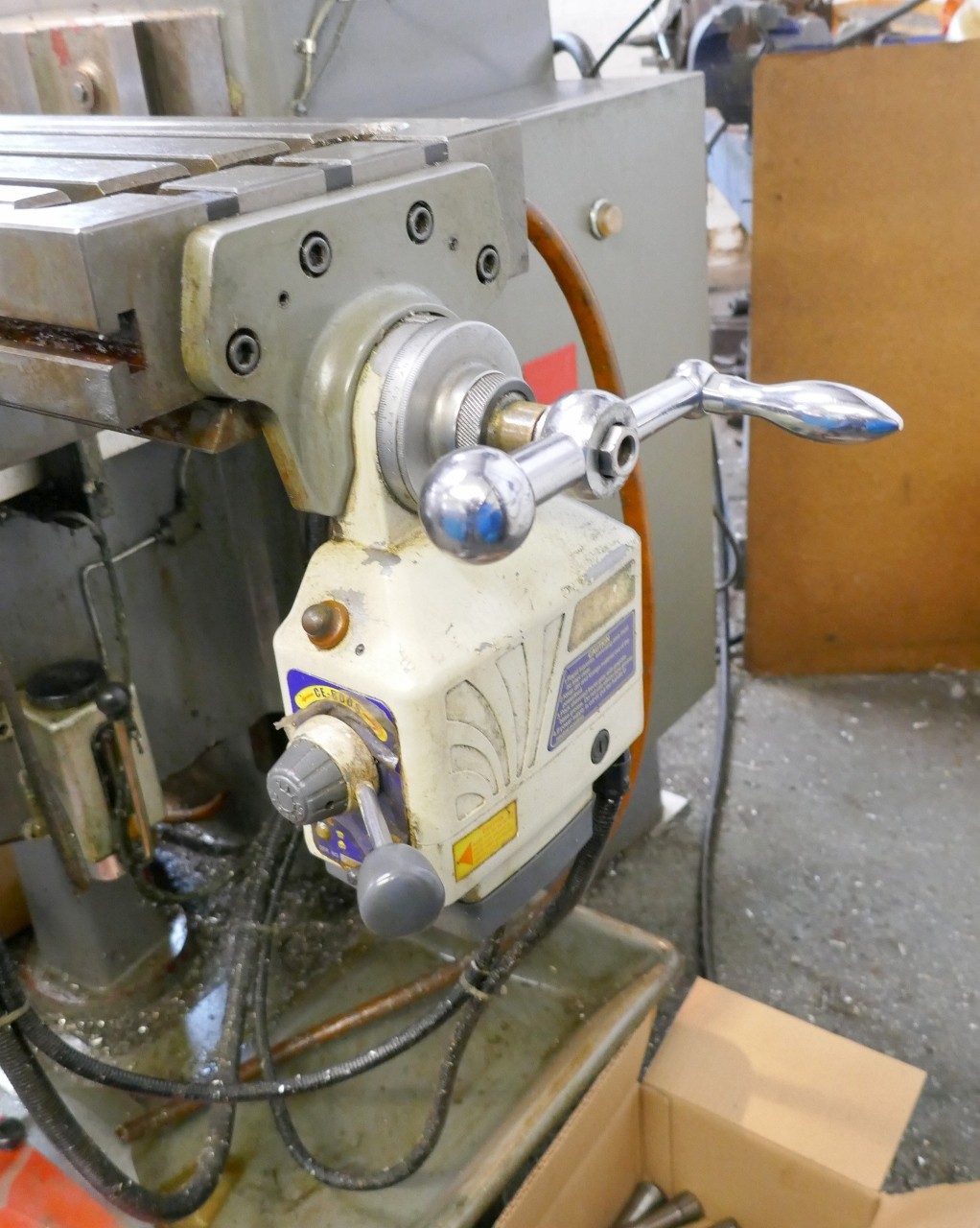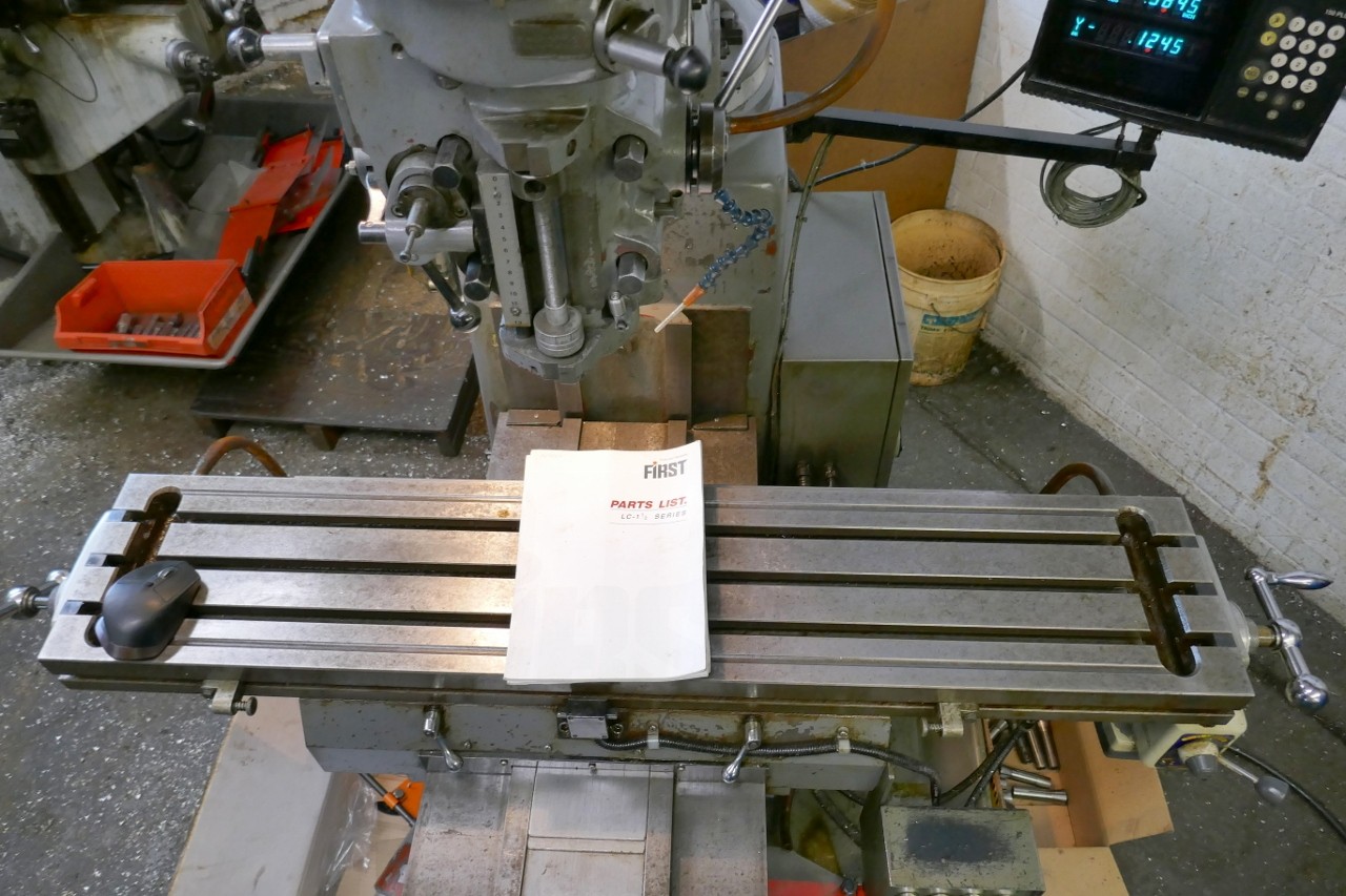 Vari-speed, 2 axis DRO, power long feed, coolant, splash tray, light, collets