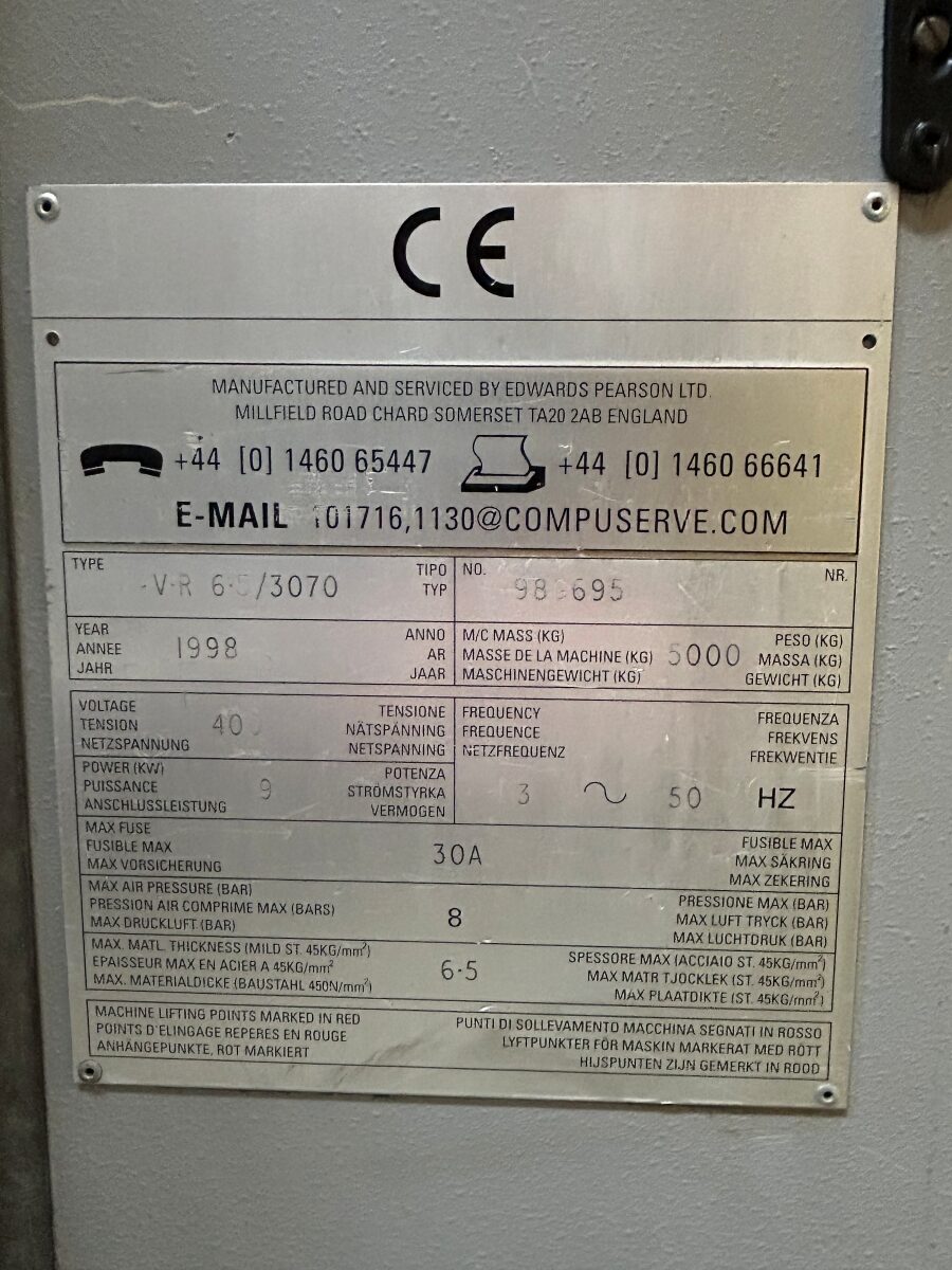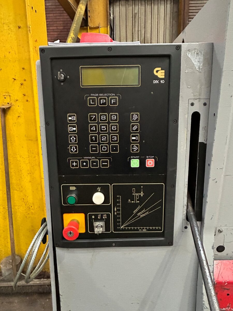 Cybelec DNC 10 programmable backgauge control, vari-rake, blade gap adjustment, squaring arm, front supports, wandering footpedal, rear guard