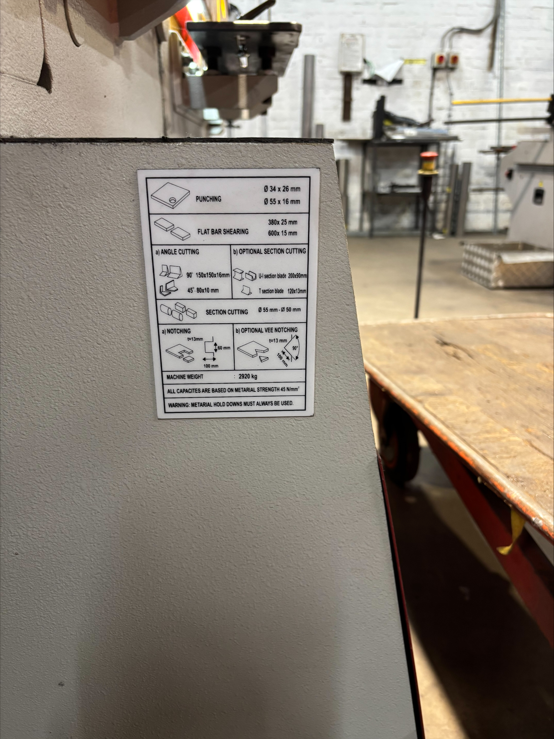 Punch capacity 35 thru 25mm / 57 thru 16mm