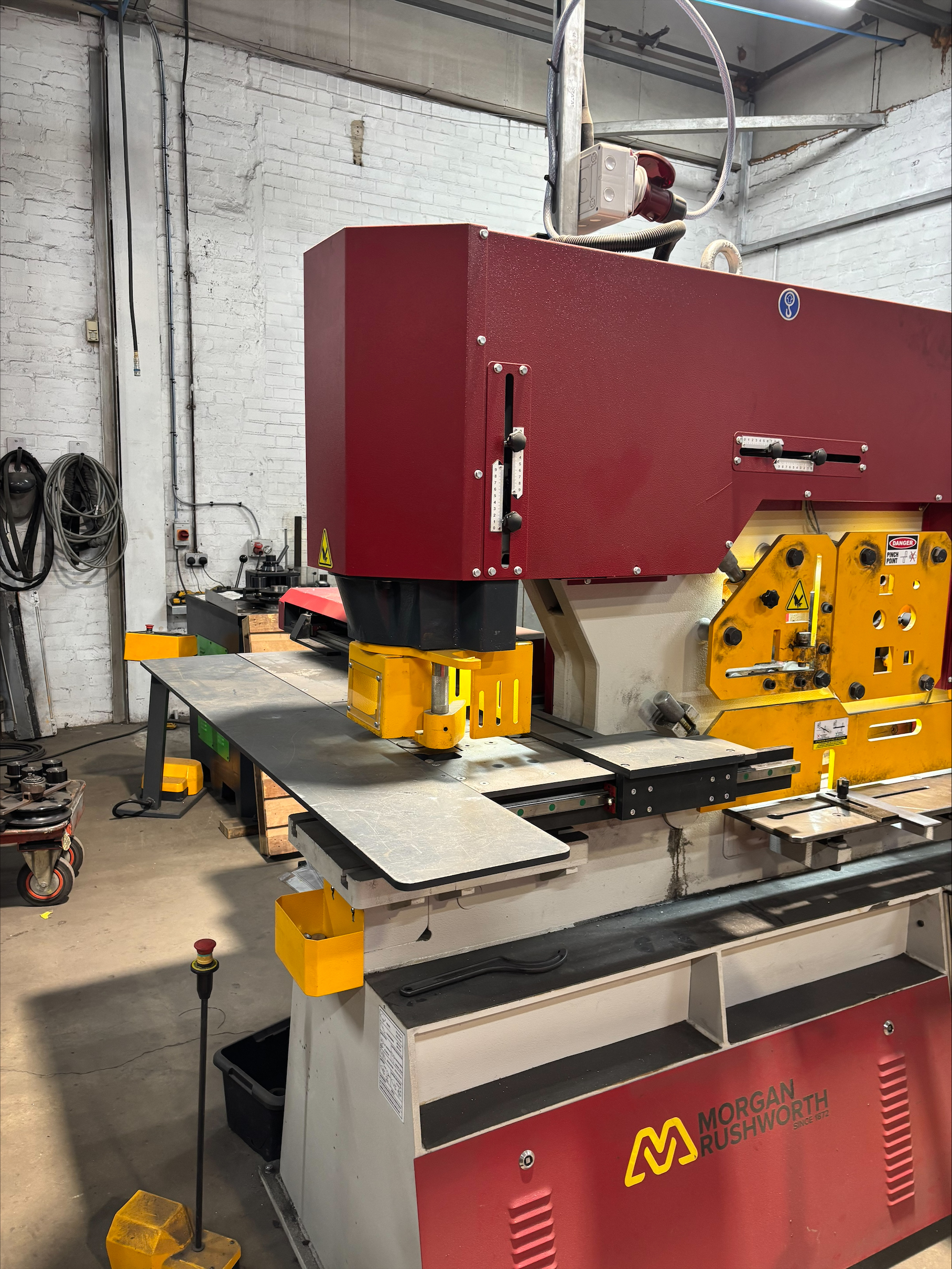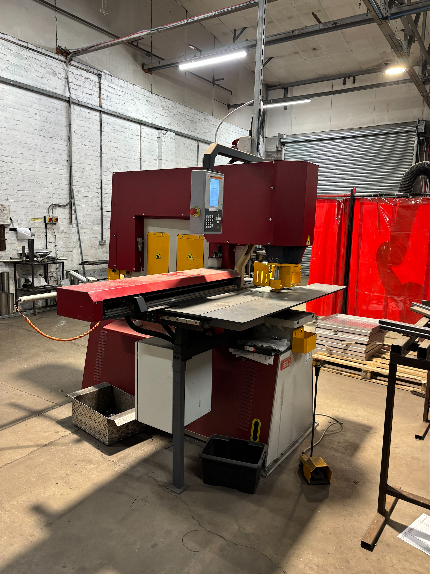 NC X & Y punch table, twin cylinders, twin footpedals, 5 workstations, touch & cut length stop, tooling, manuals. Excellent condition, very little use.
