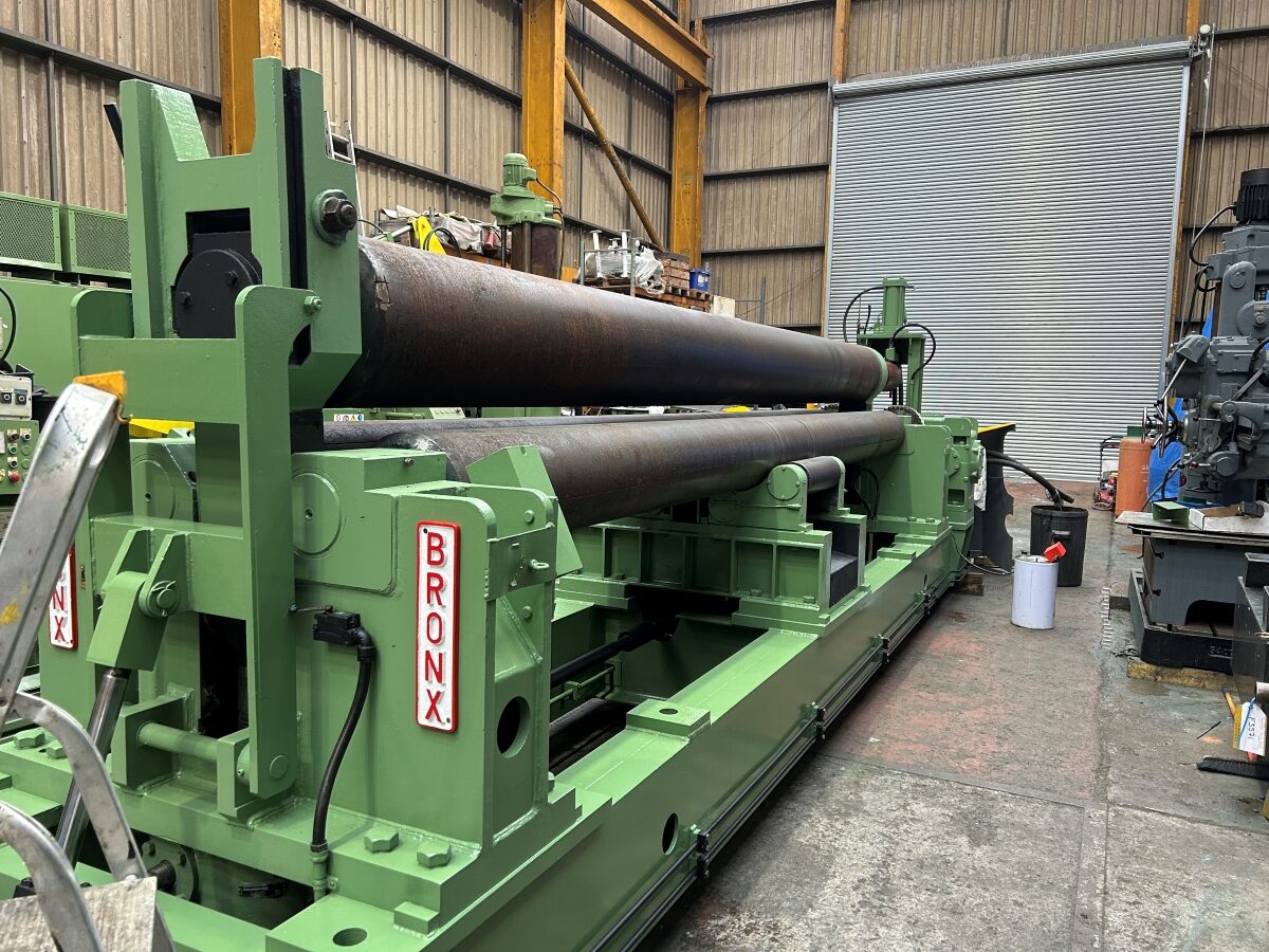 Hydraulic top roll counterbalance, hydraulic drop end, digital display for top roll position, safety trip wires, control console, David Brown hydraulic gear box