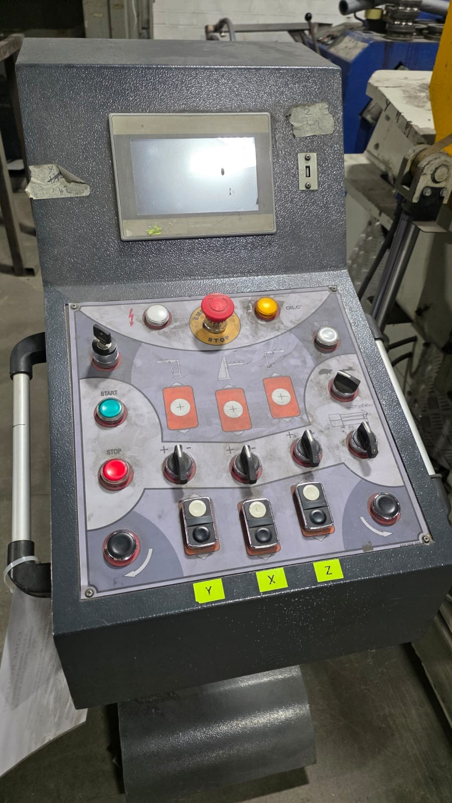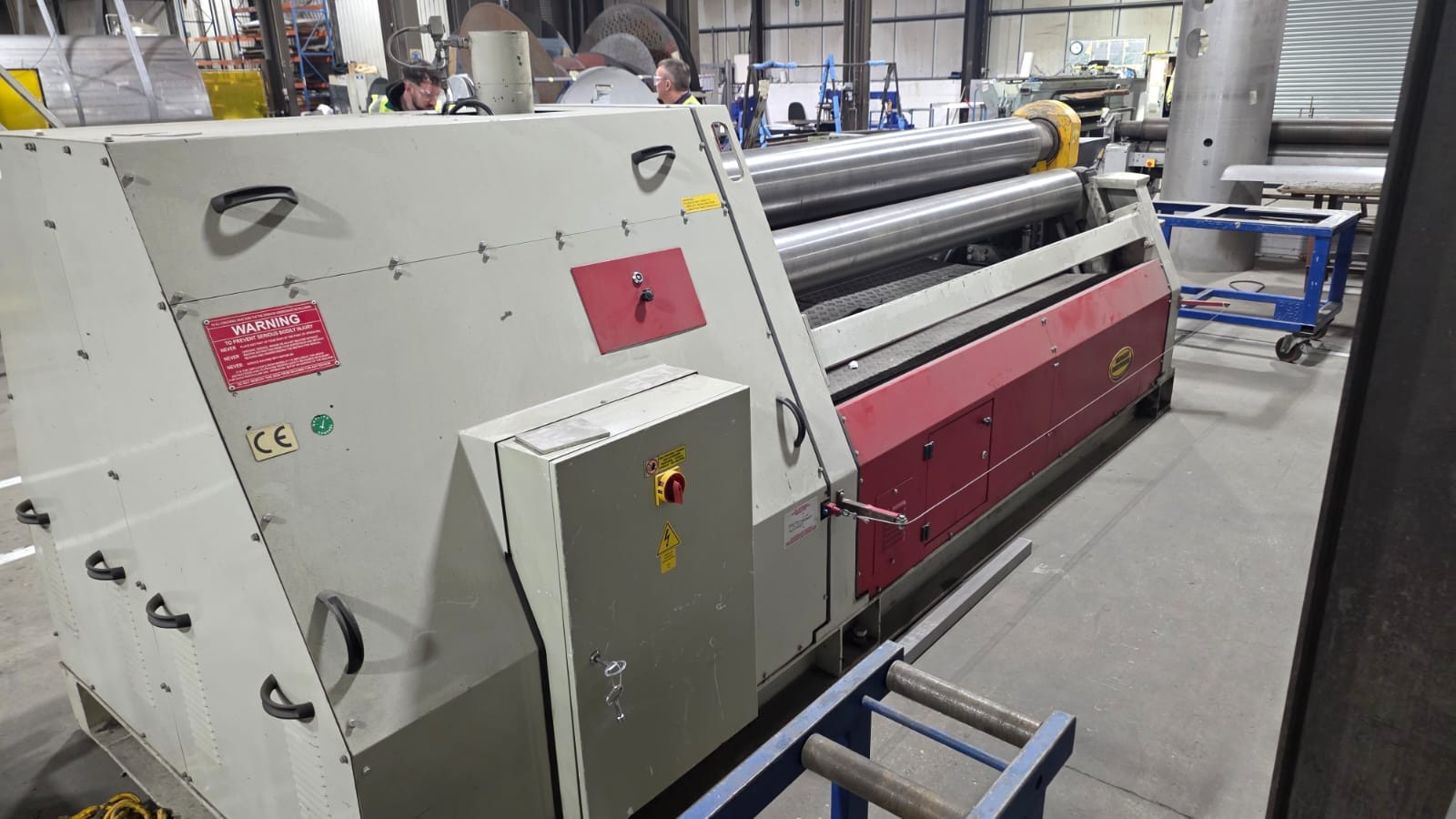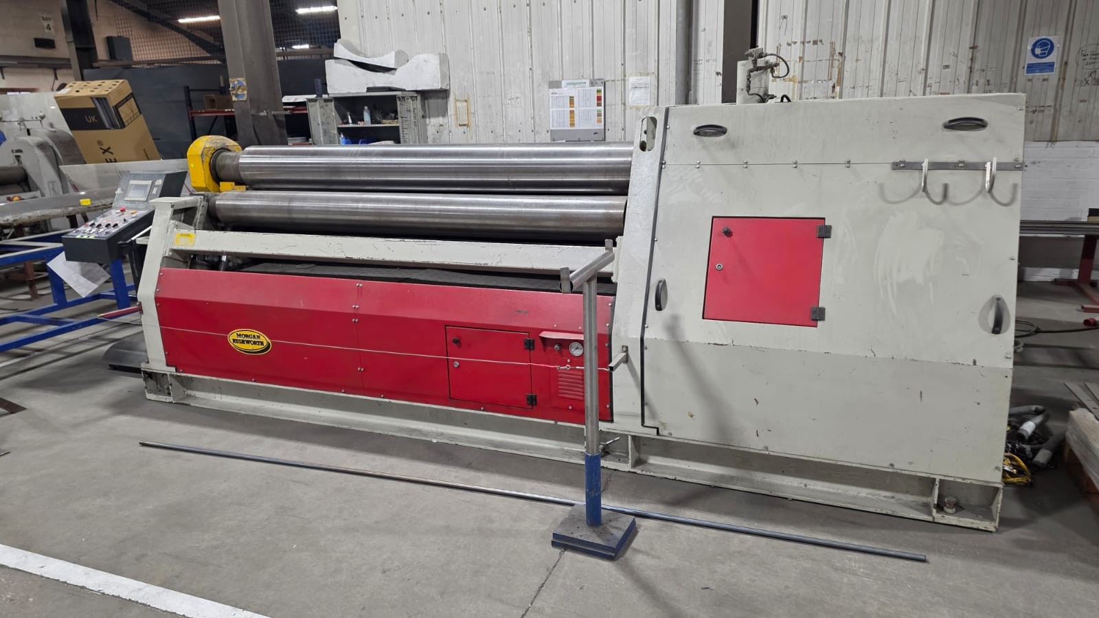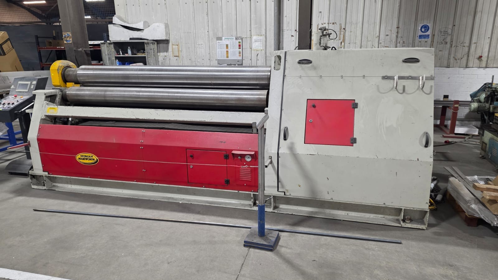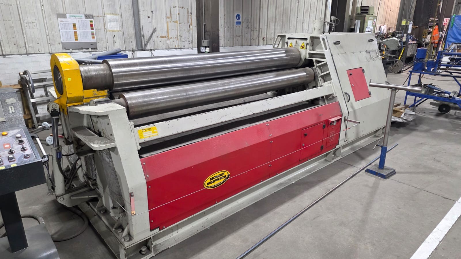4 Roll double pinch, hydraulic adjustment, hydraulic drop end, cone rolling device, mobile control console, safety trip wire, 2 speed, DRO positional display for side rolls,